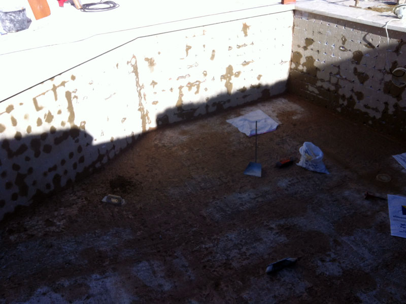 4. La piscina, según nos comento, tenía leves pérdidas de agua. Optamos por la impermeabilización de todo el vaso de la piscina aplicando varias capas de un mortero especial.